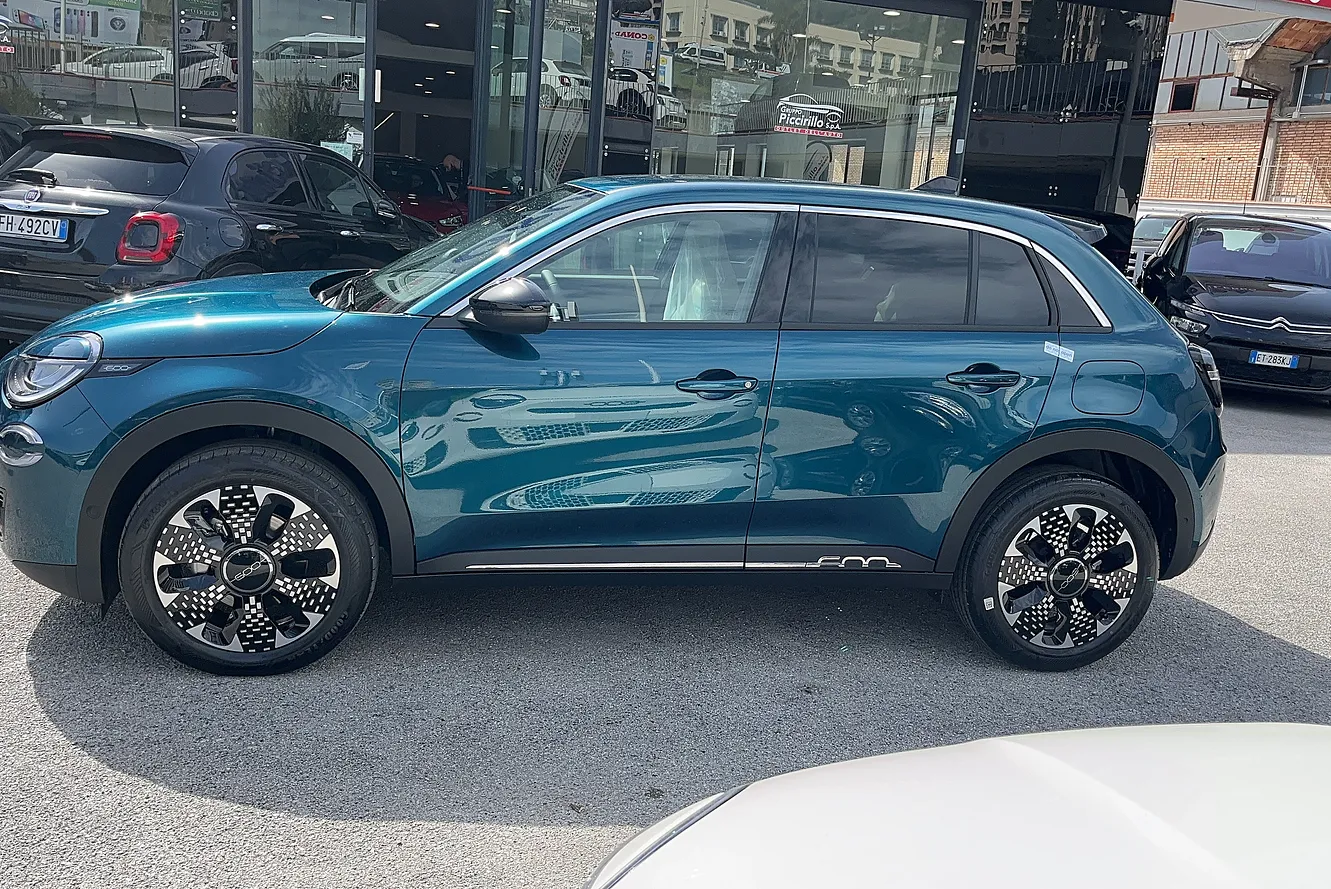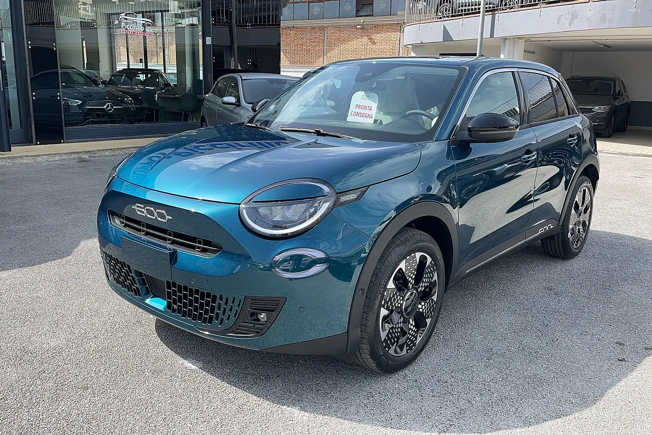 Fiat 600 1.2 hybrid La Prima 100cv auto del 2025 immatricolata il 15/02/2025. Chilometraggio: 0 km. Motore Ibrida Benzina 1199cc con 100 CV (74 kW). Cambio Automatico a 6 marce con trazione Anteriore. Colore esterno Verde Mare Met.. Categoria Crossover. Consumi: urbano l/100km, extraurbano l/100km, misto l/100km. Emissioni CO2: g/km. Omologazione Euro 6. Telaio: ZFA5FBBT1PJ039246. Prezzo: 24.890 euro. Disponibile presso Gruppo Piccirillo a SALERNO (SA).