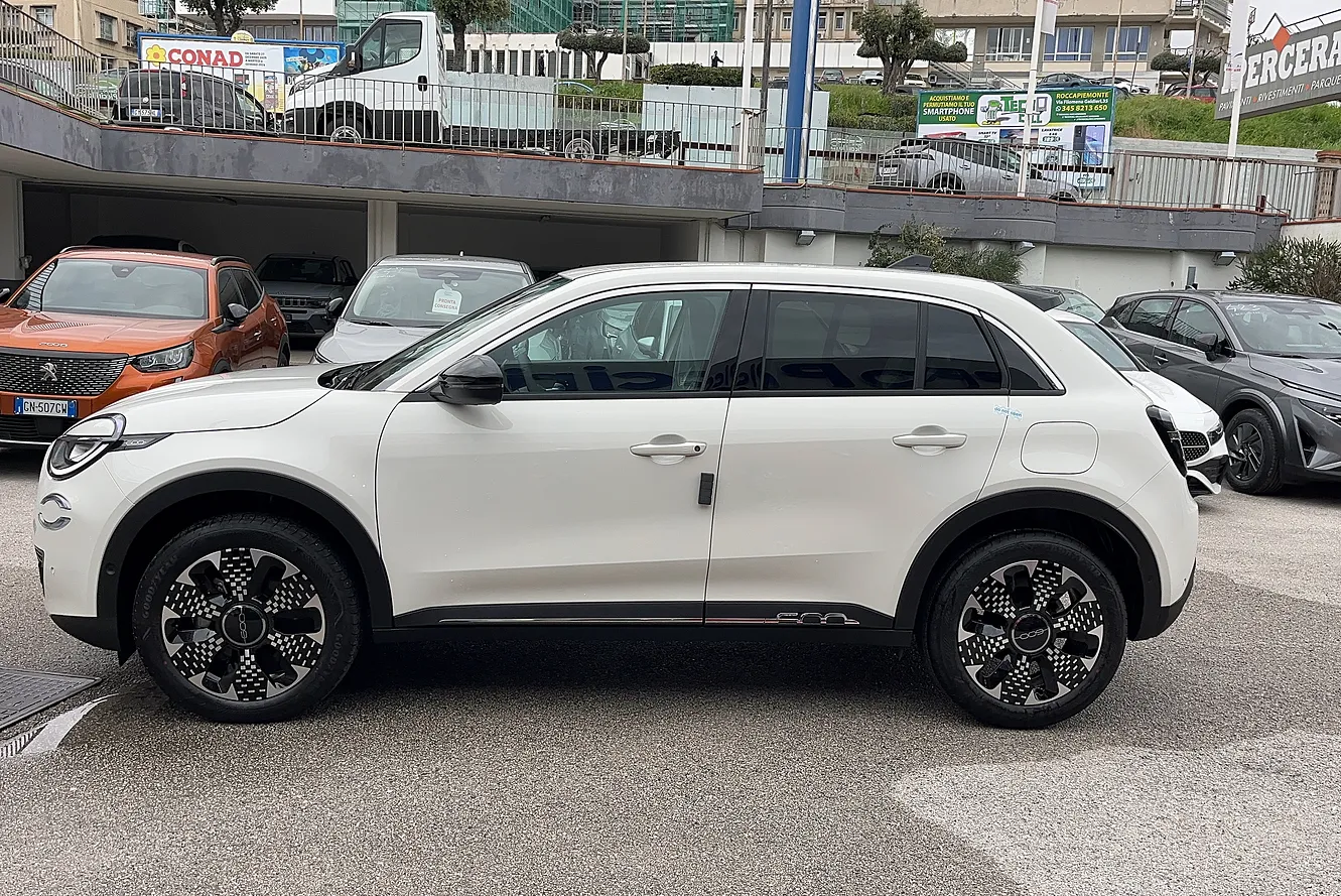 Fiat 600 1.2 hybrid La Prima II 110cv auto del 2025 immatricolata il 28/11/2025. Chilometraggio: 0 km. Motore Ibrida Benzina 1199cc con 100 CV (74 kW). Cambio Automatico a 6 marce con trazione Anteriore. Colore esterno BIANCO. Categoria Crossover. Consumi: urbano l/100km, extraurbano l/100km, misto l/100km. Emissioni CO2: g/km. Omologazione Euro 6. Telaio: ZFA5FBBT2SJ100791. Prezzo: 23.990 euro. Disponibile presso Gruppo Piccirillo a SALERNO (SA).