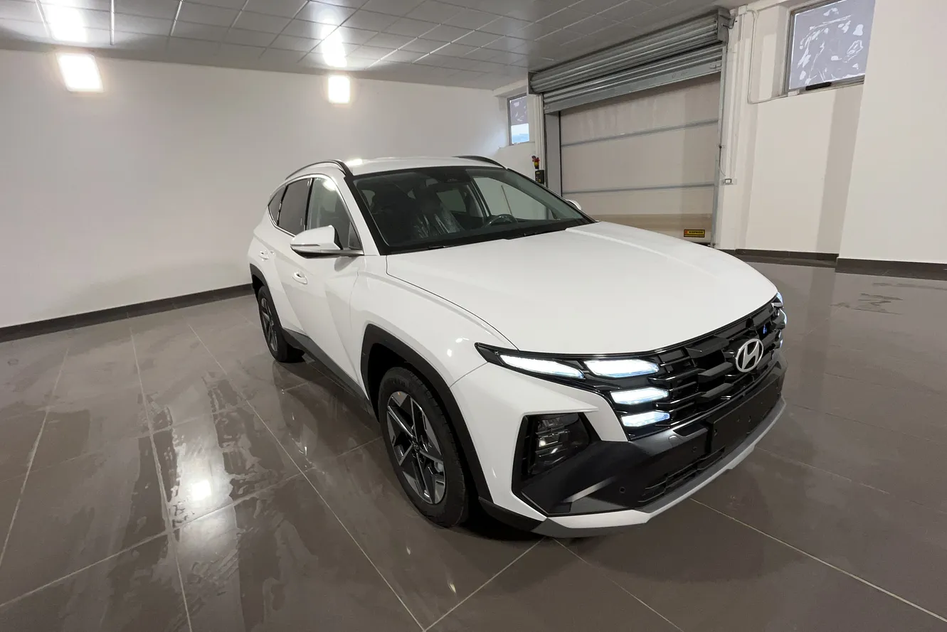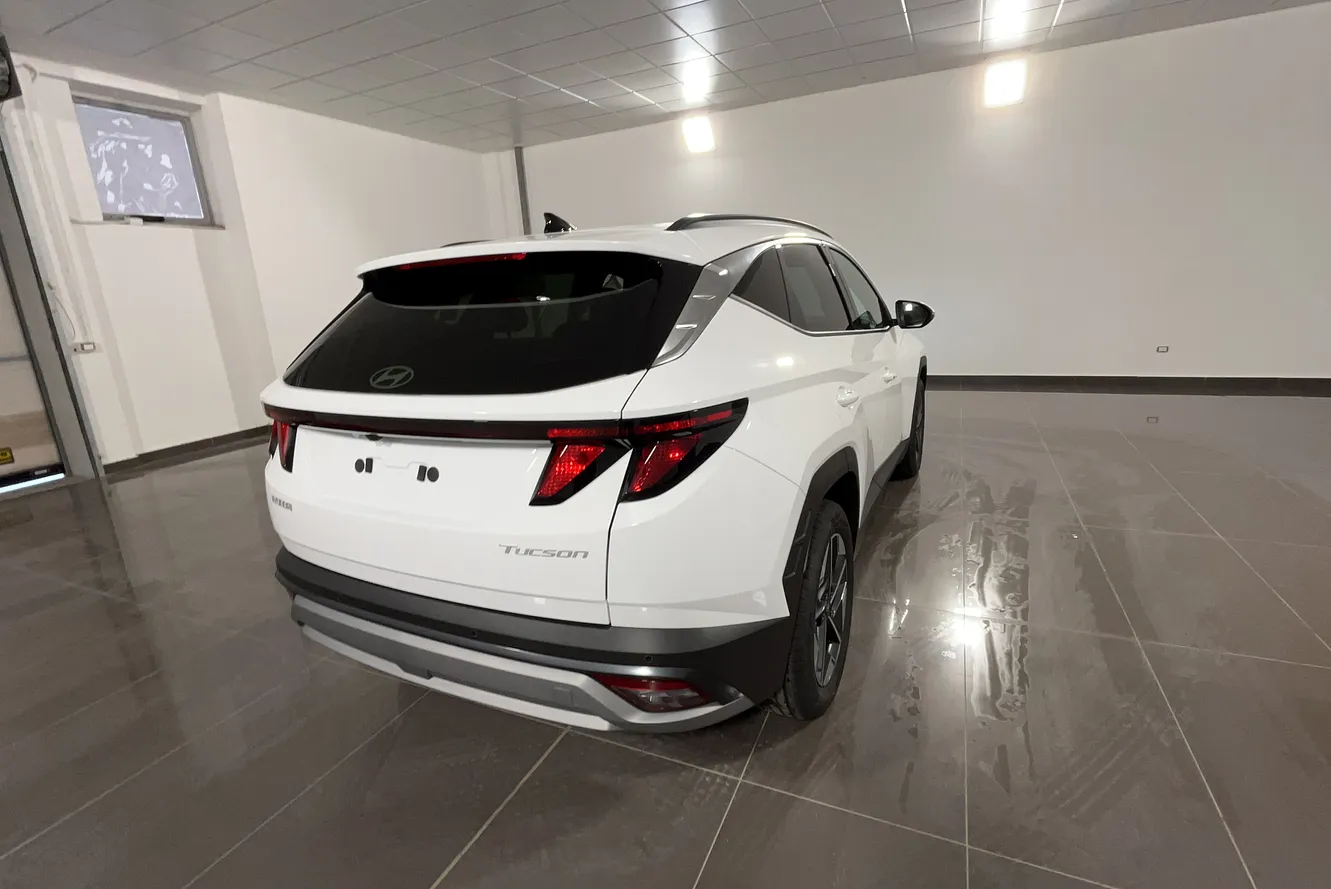 Hyundai Tucson 1.6 crdi 48V Business 2wd dct del 2025 immatricolata il 29/12/2025. Chilometraggio: 0 km. Motore Ibrida Diesel 1598cc con 136 CV (100 kW). Cambio Automatico a 7 marce con trazione Anteriore. Colore esterno ATLAS WHITE. Categoria Suv. Consumi: urbano l/100km, extraurbano l/100km, misto l/100km. Emissioni CO2: g/km. Omologazione Euro 6. Telaio: TMAJC81A8TJ687698. Prezzo: 31.290 euro. Disponibile presso Gruppo Piccirillo a Roma Tiburtina (RM).