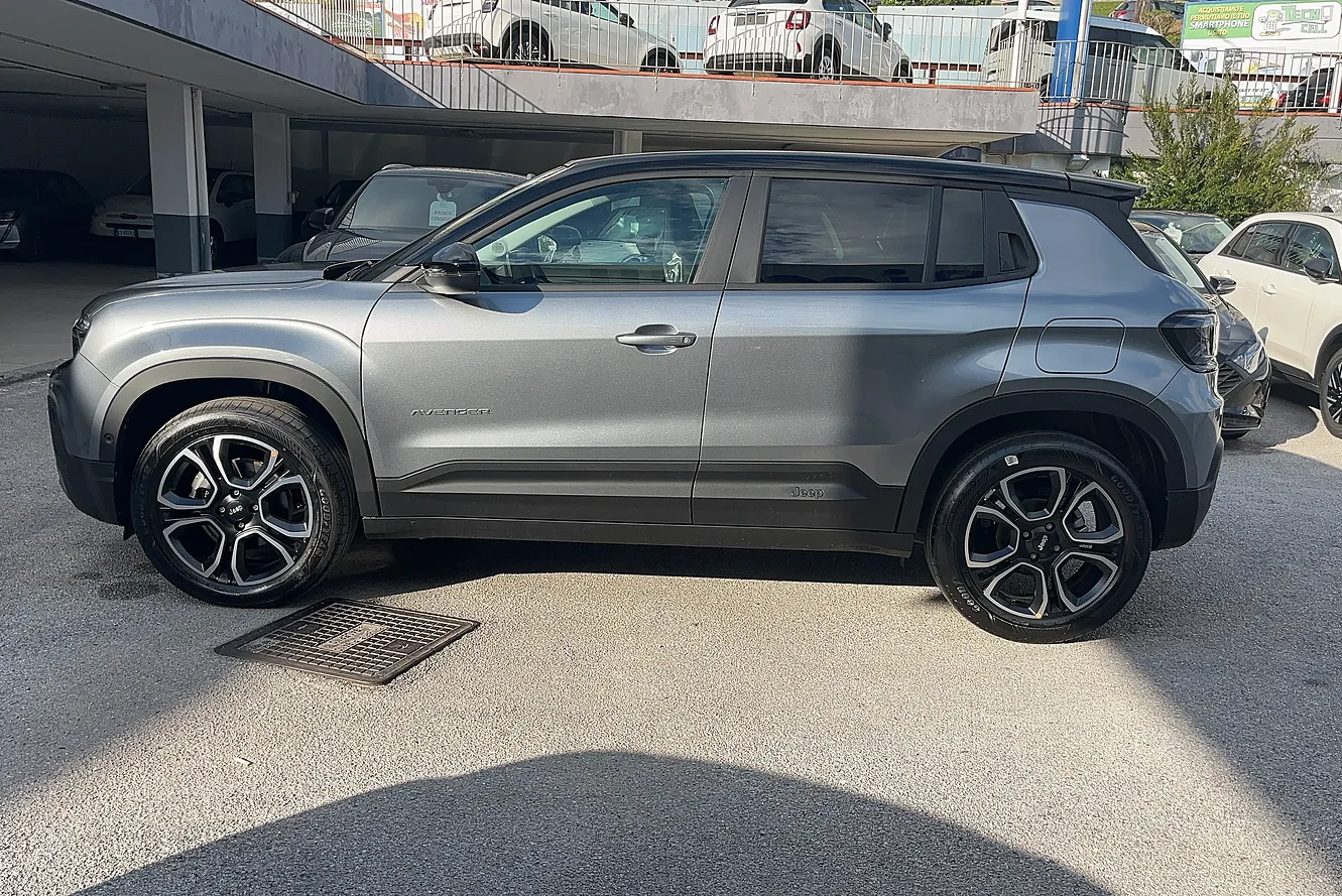 Jeep Avenger 1.2 turbo e-hybrid Summit fwd 10 del 2025 immatricolata il 03/01/2025. Chilometraggio: 0 km. Motore Ibrida Benzina 1199cc con 100 CV (74 kW). Cambio Automatico a 6 marce con trazione Anteriore. Colore esterno 664-Granite/tetto Nero. Categoria Suv. Consumi: urbano l/100km, extraurbano l/100km, misto l/100km. Emissioni CO2: g/km. Omologazione Euro 6. Telaio: ZAC5JACT5RJL33316. Prezzo: 27.490 euro. Disponibile presso Gruppo Piccirillo a SALERNO (SA).